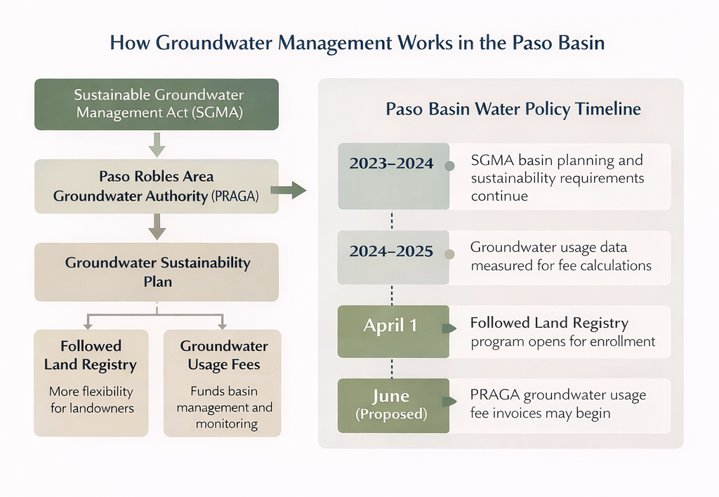 For those of us involved in vineyard property and agricultural land in this region, water regulations are worth paying attention to because they often shape both land use decisions and long-term property value. For vineyard and agricultural landowners in Paso Robles, understanding Paso Basin groundwater policy is becoming an increasingly important part of long-term property planning.